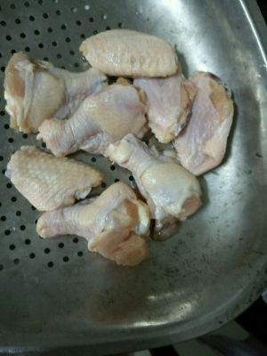 买来鸡翅鸡腿,解冻,然后用水冲洗,沥干