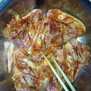 烤翅粉加水不要加太多 加太多就会没有味道了 刚刚好没过鸡翅就差不多了 腌制的中途要翻动几次鸡翅才会更入味