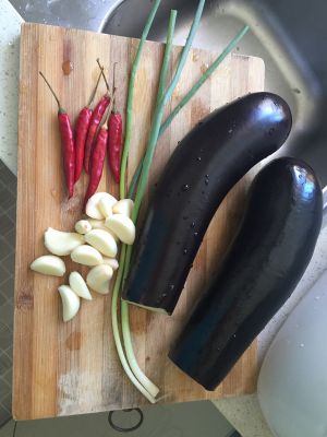 准备这样的茄子两个,清洗干净,切掉茄子根部