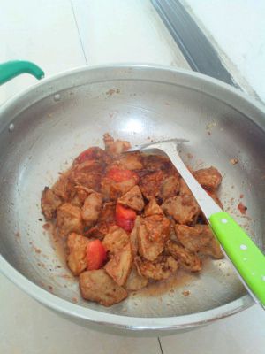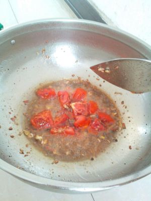 热油,爆香葱姜末,放花椒粉,西红柿煸炒一下。