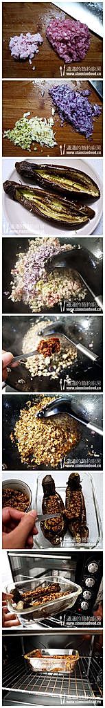 烤箱提前预热200度,将铺好肉酱的茄子连容器一起放入烤箱烤15-18分钟。