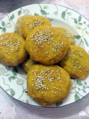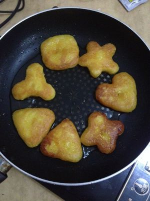 按压成扁平状,下锅,小火煎至两面金黄,因为南瓜是熟的,糯米容易熟,煎的时间几分钟就可以