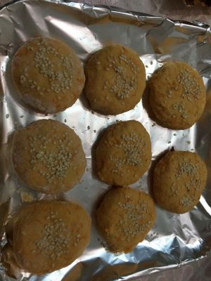 包好后蘸芝麻烤箱烤5—10分钟或油炸即可
