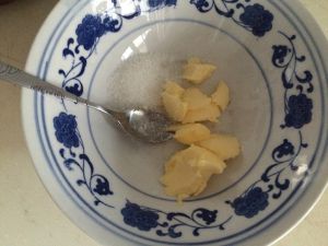 准备黄油和糖粉,如果你的豆沙馅是甜的糖粉就不用加太多