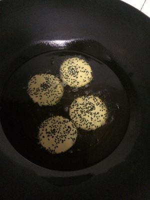 油温小火慢煎最好!煎出来的芝麻南瓜饼又香又脆!