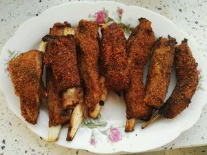 洗净羊排,泡除血水,加入生姜,料酒,生抽,蚝油,花椒粉带上手套摸均匀在羊排上。