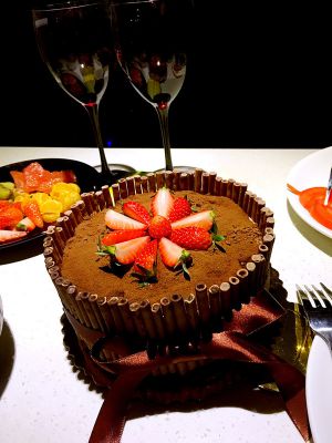 蛋糕胚刷点兰姆酒……六寸蛋糕磨底部放蛋糕 倒混合液、再放蛋糕,再倒液,冷藏一夜。撒可可粉。脱模。