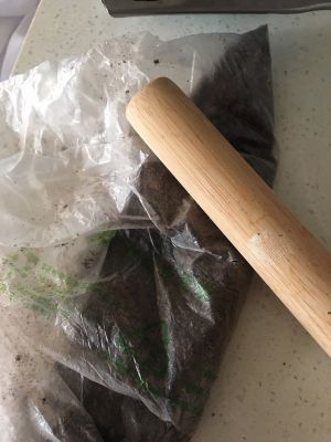 将饼干用擀面杖擀碎,越碎越好