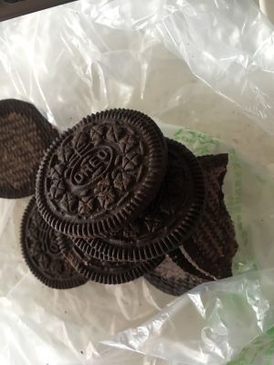 在融化黄油的同时,将奥利奥饼干里的夹心用勺子刮掉,只留饼干部分
