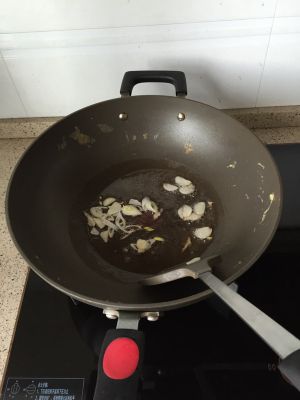 炒好的鸡蛋盛出备用,将葱蒜切片放入锅中炒香。