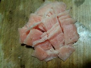 黑木耳泡开,洗一洗,把蒂给剪了,然后把大朵的稍微剪小一点里脊肉用刀背拍松,切片,用少许料酒和盐拌一下~