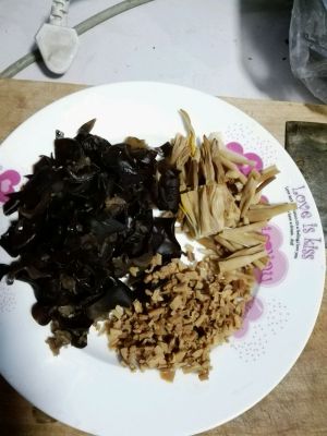将葱姜蒜切末备用(多切点味道正),我准备的是泡发的干木耳,大家也可以用鲜木耳。