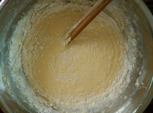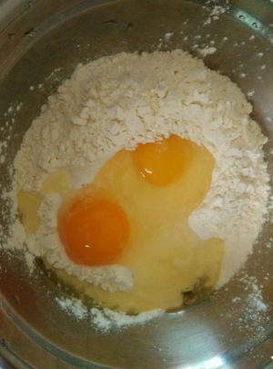 加面粉(少量少量的加,以免一次性加太多会太干)搅均,一定要一个方向搅