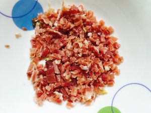 加入盐、面粉(要少,多了不好吃),鸡蛋,搅拌均匀。