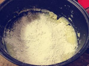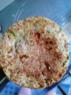 电饼铛加热放入适当的花生油,把搅拌均匀的食材放入。