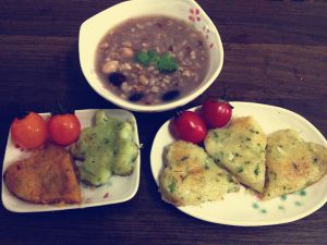 上锅煎,出成品,再加一碗杂粮粥,营养均衡,美味