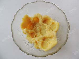 再用勺子把蒸熟的土豆压成土豆泥,备用。。