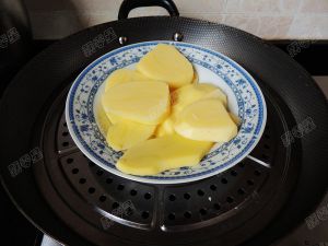 土豆最好选择淀粉多的品种,比绵软。去皮切小块,上锅蒸10分钟左右,蒸熟蒸烂就好。