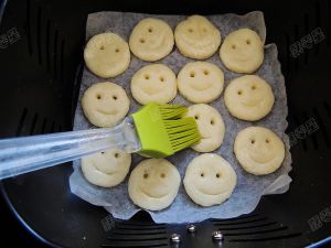 用筷子扎出两个小孔作眼睛,用勺子挖出嘴形