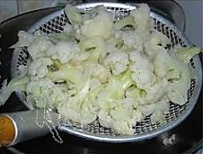 烧8分钟后,将菜花捞起,沥干备用; .