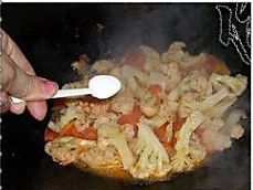 加入菜花翻炒均匀; .
