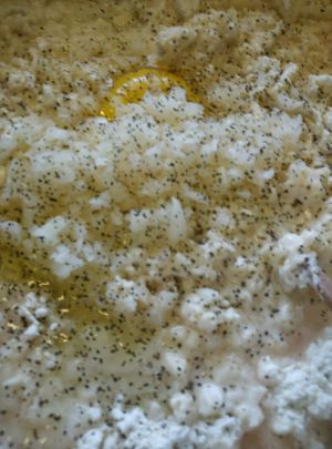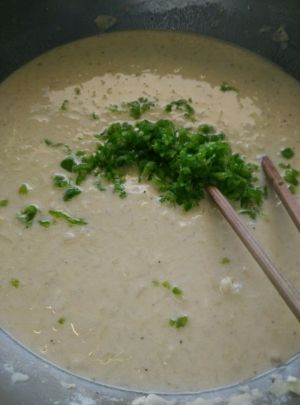 土豆用勺壓成泥 雞蛋打了攪拌 和土豆泥混合攪拌 加適量的麵粉以免太稀 加鹽 胡椒粉 五香粉 芝麻油攪拌均勻