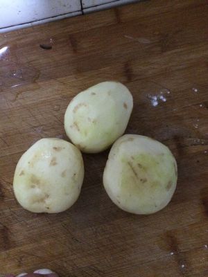 土豆弄好了,蒸过的很好撕,轻轻一撕皮就掉了,还很薄哦