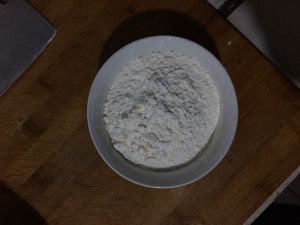 加入面粉和牛奶。量根据土豆泥的多少来看,没有固定的量,别太稀了就行,要求不高。