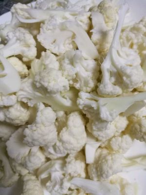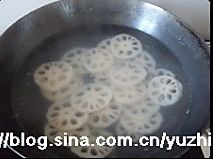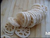 首先处理食材,把藕洗净去皮,然后切薄片。菜花掰成小朵,木耳洗净泥沙