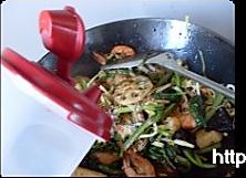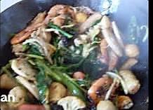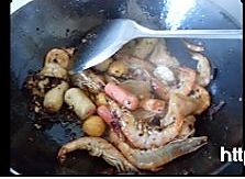 放鲜虾翻炒,然后放入焯好的各种丸子炒匀