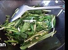 加入青菜,大火收干水分,撒上少许芝麻点缀即可