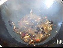 原料过油,葱姜蒜,辣椒,麻辣,煸炒香,放入原料加十三香,豉油,干锅油干炒