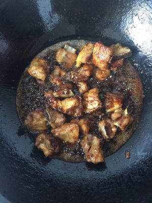 半小时后水已经熬的差不多干了 开大火收汁 注意要不停翻炒 避免糊锅