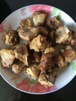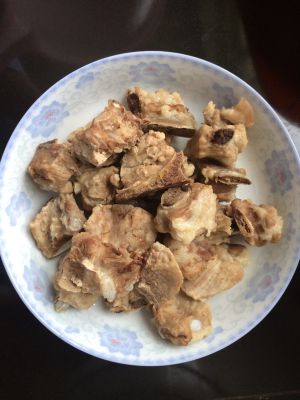 把排骨挑出来单独放在一个碟子里【汁要留着有用】热锅 倒油然后把排骨放进锅里放盐放糖放醋【个人偏甜】翻炒 然后把汁倒入锅里煮,如果骨头大的话就多煮一会,