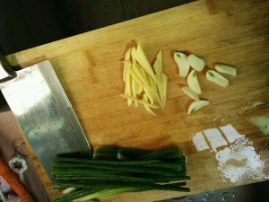 准备姜,葱,蒜 姜切片或者切丝,蒜切块 ,葱备用