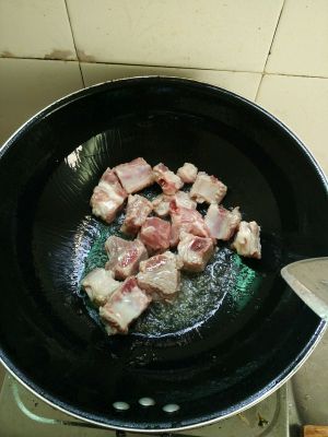 准备好排骨 最好是肋排 容易熟 其他也可以 这个大概是两个人的份量 喜欢吃肉的可以多加几块