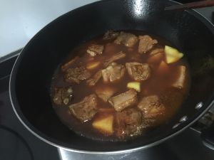 水要淹没排骨,盖上盖闷烧,直至汁水粘稠裹住排骨干为止,关火。