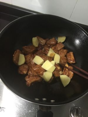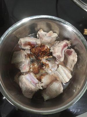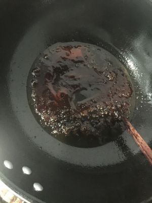 3.加入半勺老抽或者加入半勺海天酱油生抽研制5分钟上色;