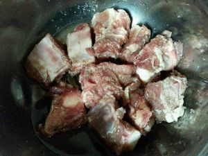 排骨小段加入少许大喜大粉 白糖 盐 老陈醋腌制半小时到一小时倒掉水