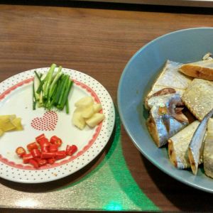 准备配料:生姜、蒜头、小米椒、小葱