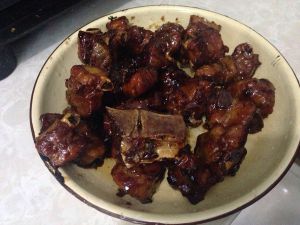 锅内放入适量油,油热后倒入葱姜,煸香,加入排骨翻炒,表面微黄后,加入料酒、糖、酱油和醋,倒入少量开水,盖上锅盖焖15分钟。待锅内汤汁粘稠,再加入少量陈醋、翻匀后起锅。