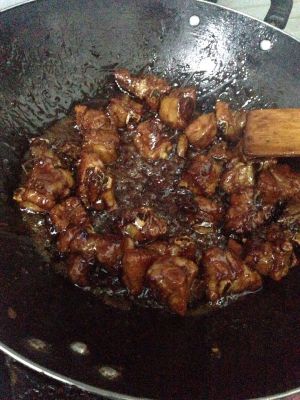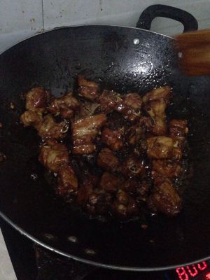 翻炒直到汤汁收的差不多,排骨上色均匀,即可出锅。