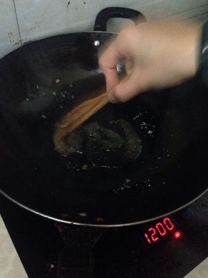 放油,煸炒蒜和姜,再放入排骨块,等排骨表面炸至黄色,倒入少量水,盖上锅盖