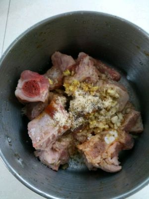 排骨洗干净后,依次加入葱末、姜末、酱油、醋、耗油、盐巴、鸡精