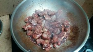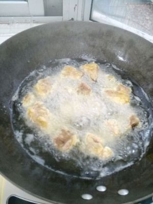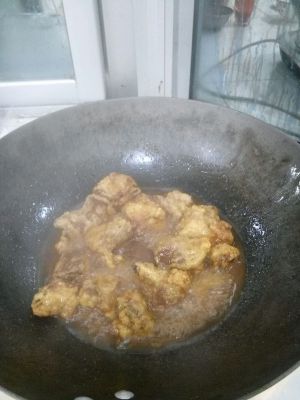 加入一勺料酒,两勺老抽,三勺生抽,四勺醋,四勺糖,调好汁。(忘拍糖了)