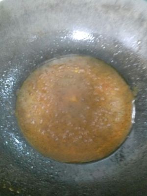 油+番茄酱+用清水、酱油、醋、糖调好的汁倒入一起煮