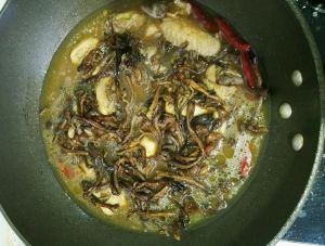 开盖放入泡好的臻蘑,再炖半小时。放盐。