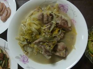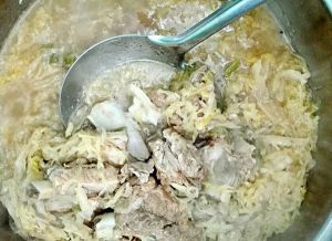 炖排骨时的老汤全部加入酸菜锅内,加入适量盐,大火烧开后转小火一小时