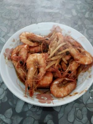 姜丝番茄酱准备好,锅内下油,烧热后放入姜丝,炒出香味,下入大虾。