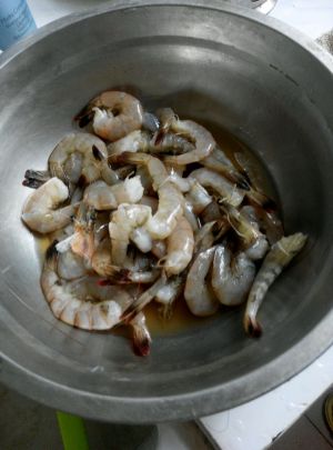 水一定要倒干,放料酒,大约一个虾的厚度,腌制20分钟,去腥味